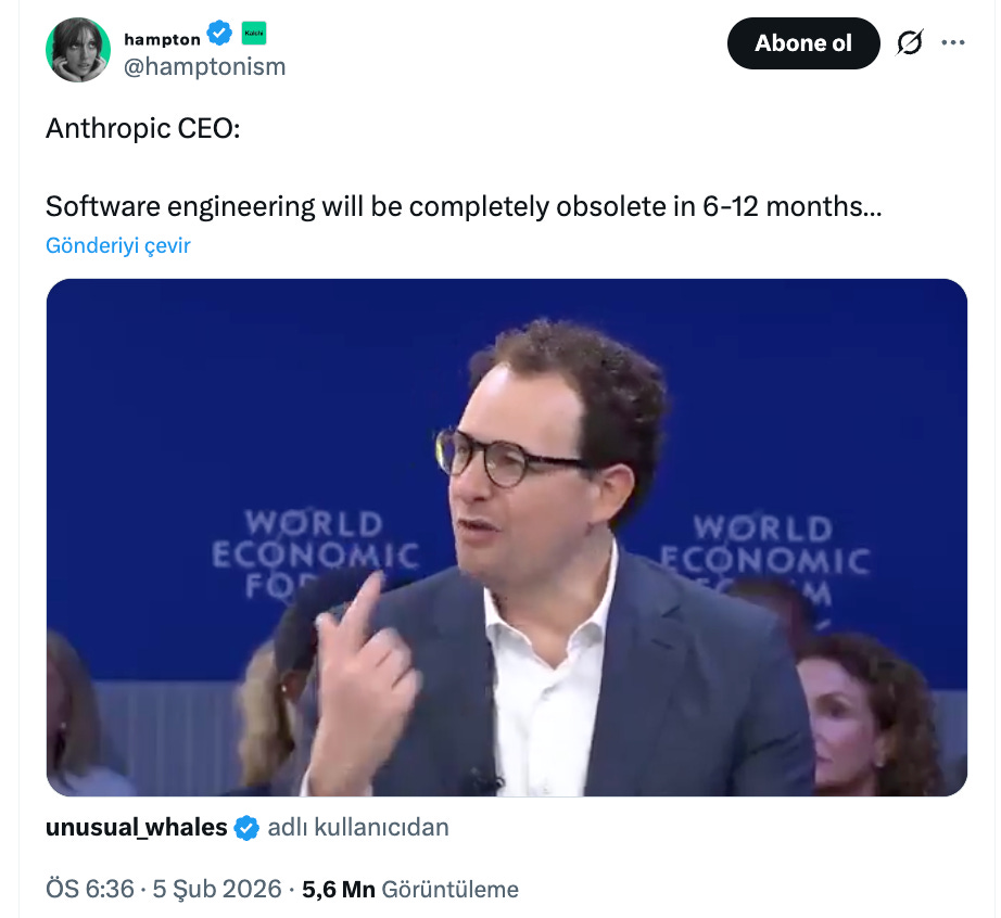 Teknoloji dünyasında ender görülen bir tesadüfle (!), OpenAI ve Anthropic aynı gün, sadece dakikalar arayla yeni Agentic (otonom ajan) kodlama modellerini duyurdu. Artık sadece kod yazan değil, projeyi baştan sona yöneten, hata ayıklayan ve deploy eden sistemlerden bahsediyoruz. Geliştirici verimliliği için devrim, junior yazılımcılar için kabus olarak nitelendiriliyor. Gelişme, sosyal medyada Anthropic CEO’su Dario Amodei’nin Davos’ta “yazılım mühendisliği 6-12 ay içinde yol olacak” konuşmasının yeniden dolaşıma girmesine sebep oldu.