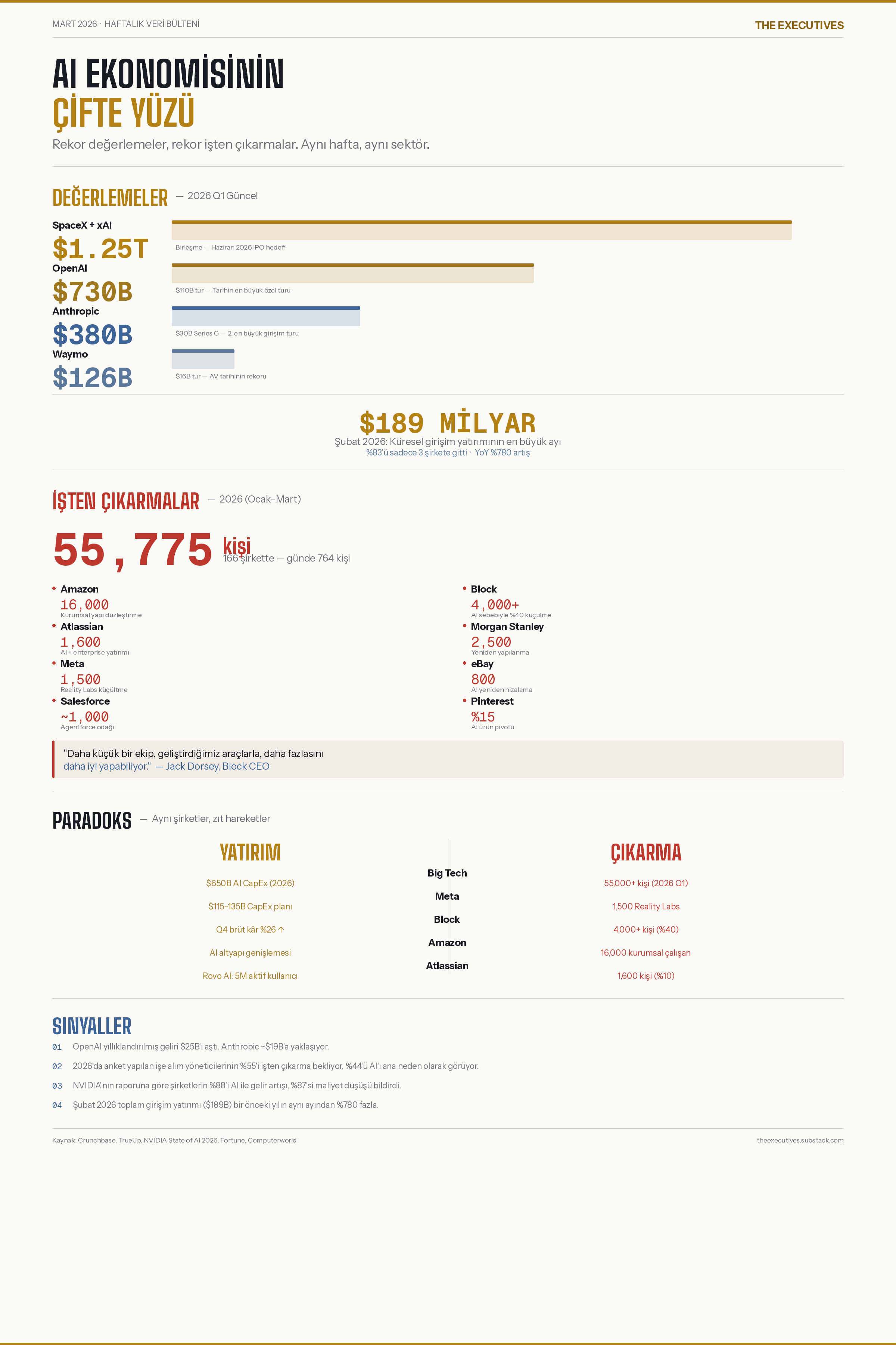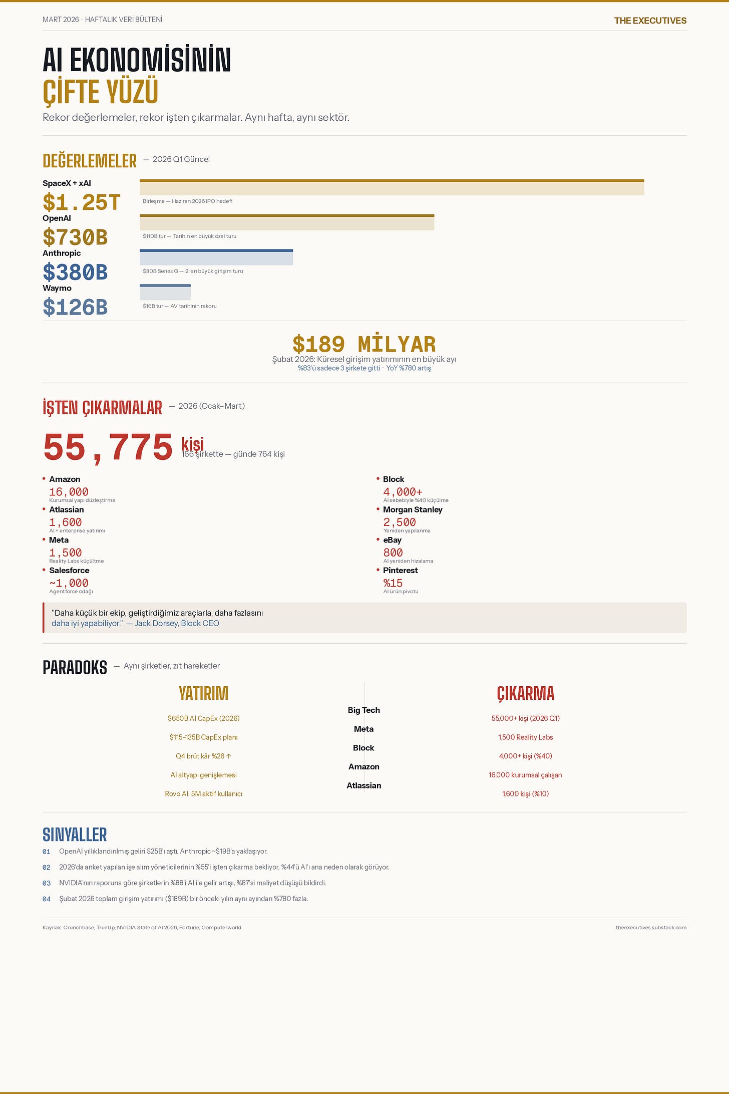 Executive Veri: Haftanın değerlemeleri ve işten çıkarma rakamları