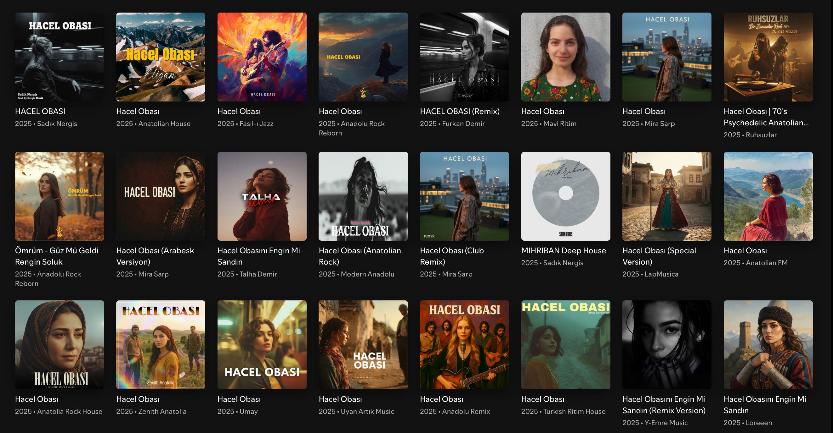 Herkes Youtube’a yüklüyor, müzik platformlarında durum böyle değildir diye mi düşünüyorsunuz? Sizi yormadan Spotify arama sonuçlarını paylaşayım. Ne diyordu türkümüz: