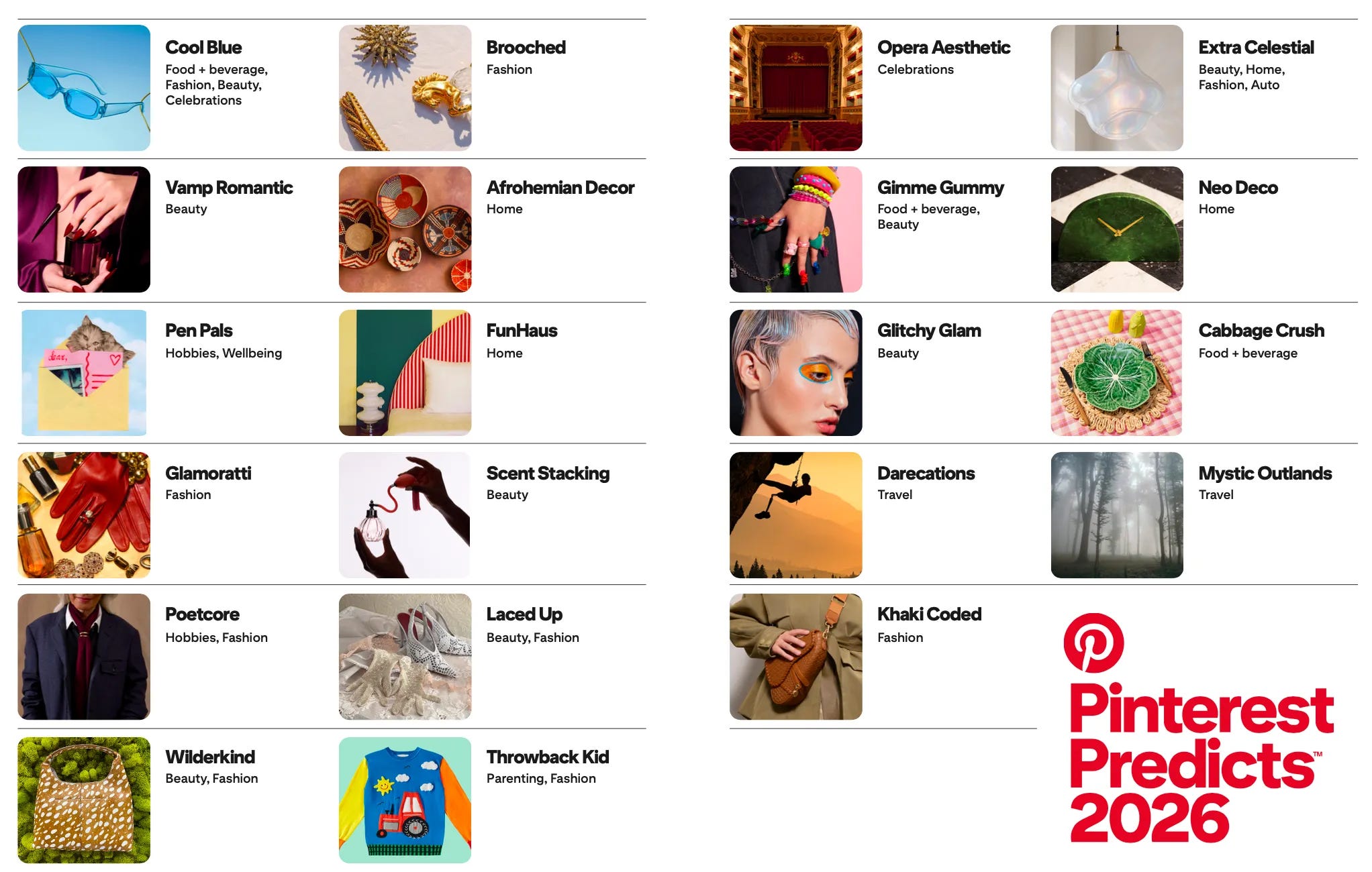 Kendi verilerine göre 2026’da aşağıdaki alanlarda Pinterest trafiği artışta olacak.
