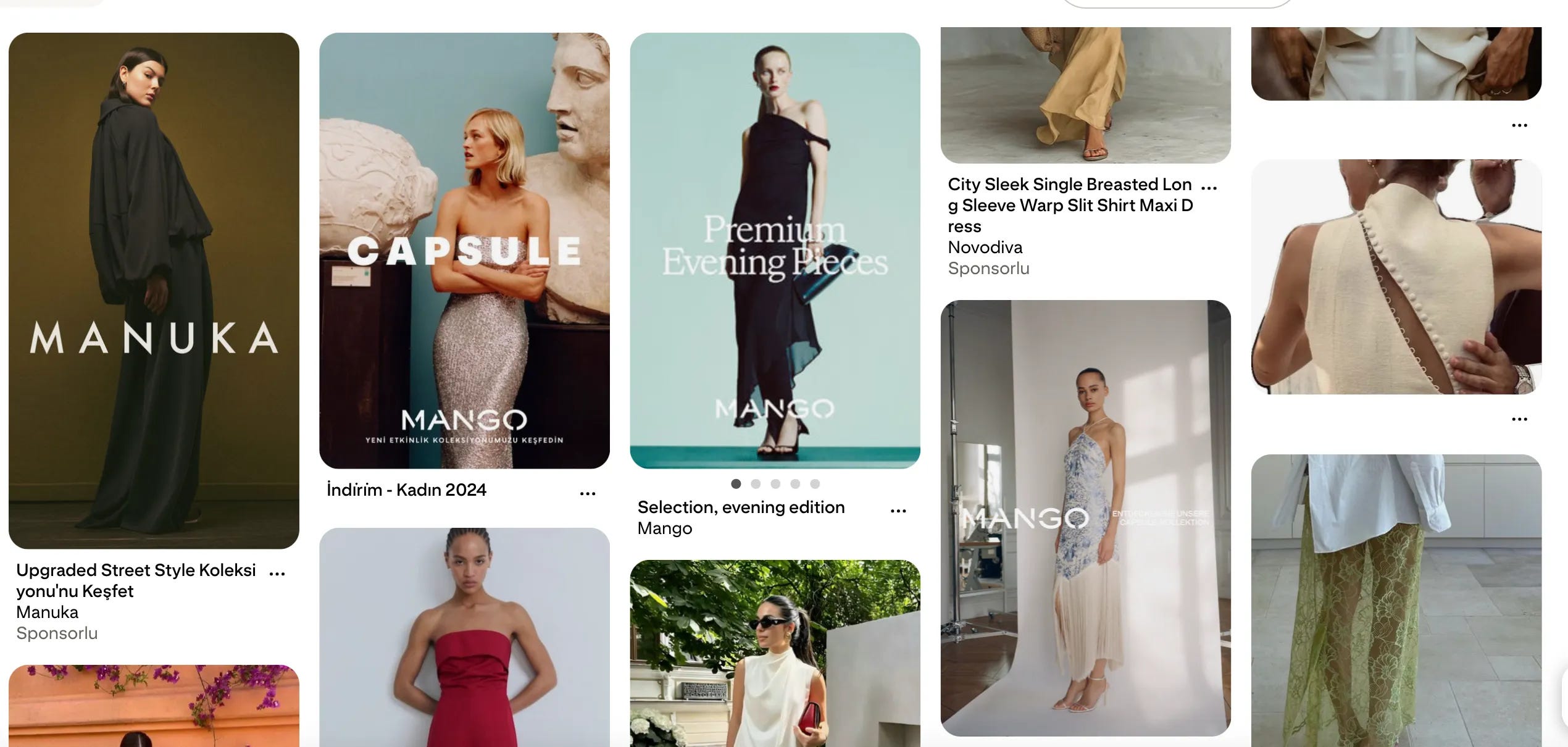 Antropolgie, H&M, Mango gibi hazır giyim devleri Pinerest’e hem reklam yatırımı yapan hem de organik içerik üreten markalar. İlham almak için incelemeye değer. Ve tabi onların yanında Manuka gibi yerli ve milli markalarımızı görmek de sevindiriyor. Çünkü burası yeni ve keyifli bir oyun alanı. Bir de küçük haber, ajanslar da artık Pinterest’te işletme hesabı açabiliyorlar.
