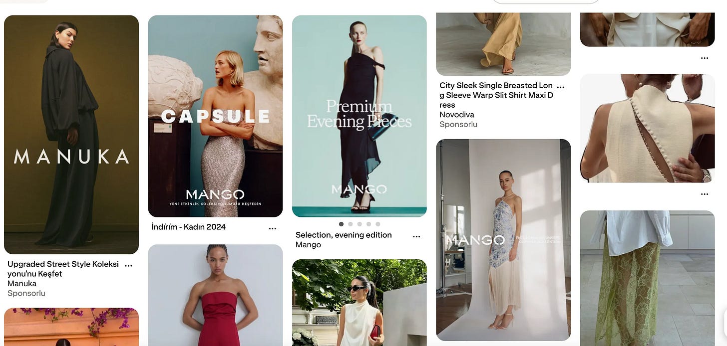Öncelikle platformun arama motoru mantığıyla çalışması sayesinde doğru yapılandırılmış içerikler uzun süre görünür kalmasını kullanacağız. Markaların burada yapması gereken, ürün kataloğunu “pano estetiği” içinde yeniden kurgulamak. Her ürünü tek başına paylaşmak yerine, ilham veren kombinler, tema bazlı moodboard’lar, renk uyumu panoları ve kullanım senaryoları oluşturmak ki bu organik performansı belirgin yükseltiyor.