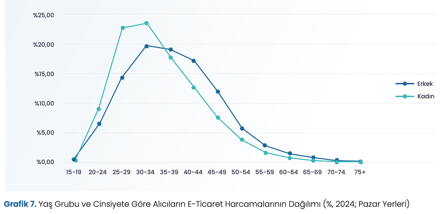 25–44 yaş e-ticaretin yükünü taşıyor ama sahnede Z kuşağı var.